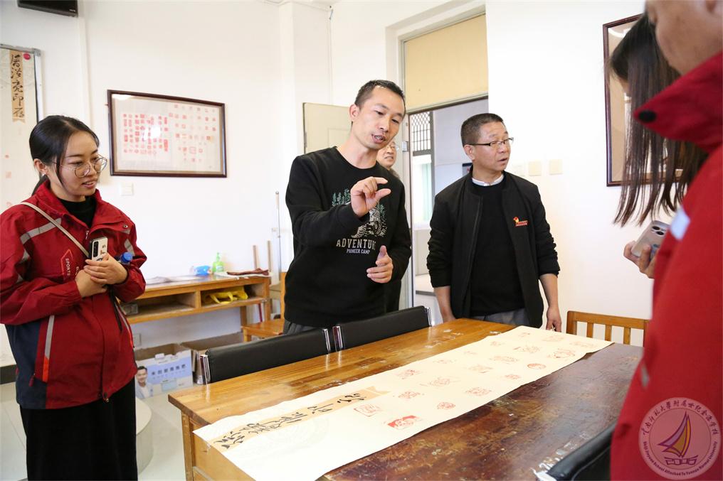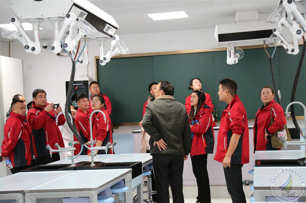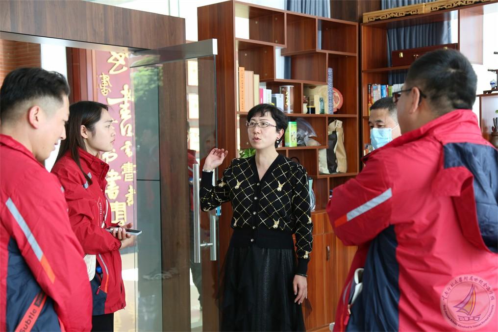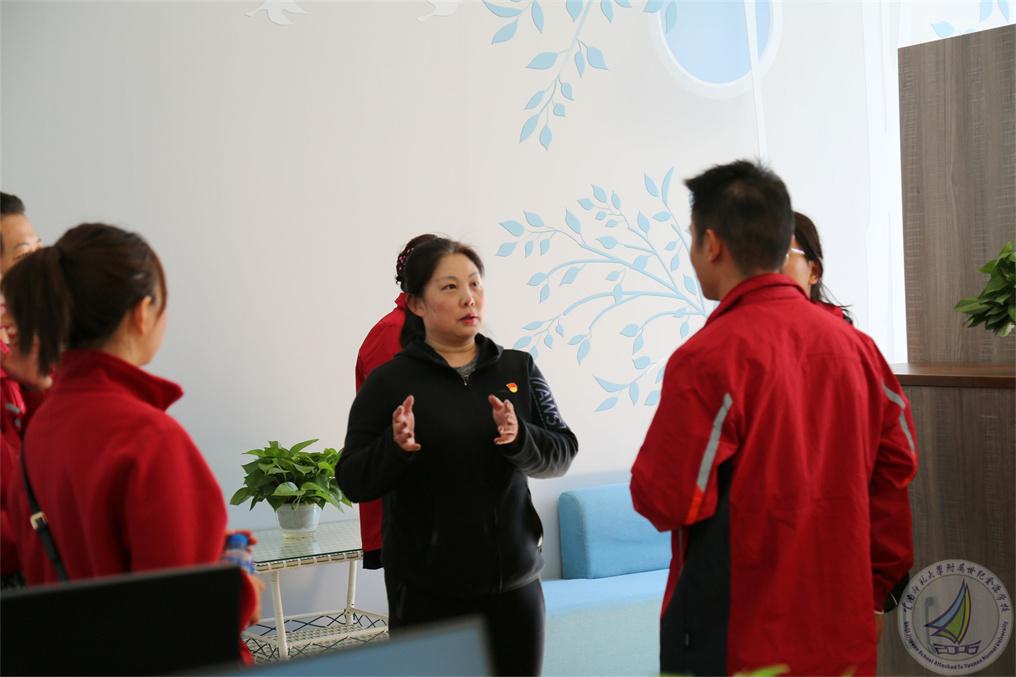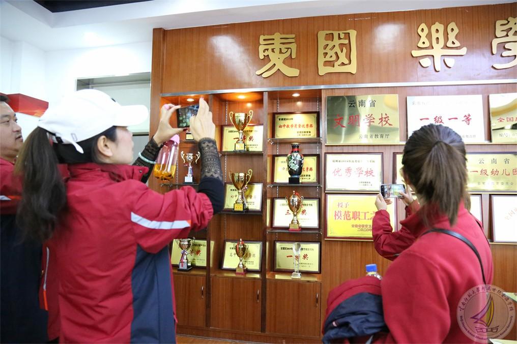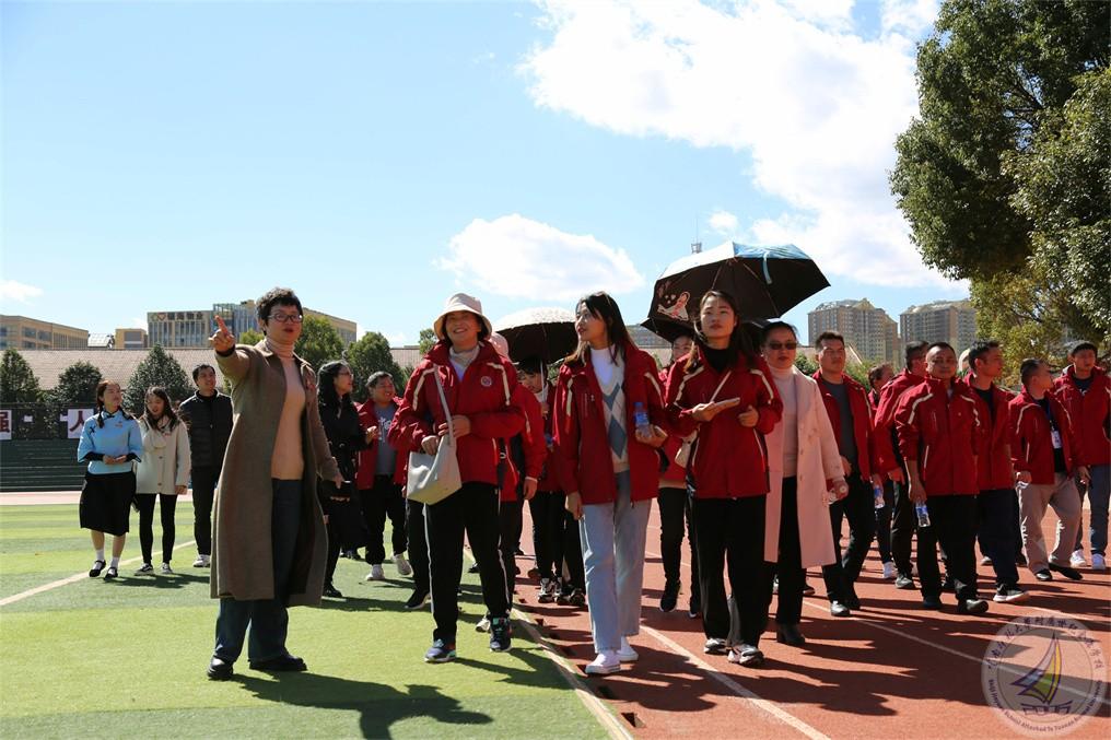 到访的校长们在我校行政办公室副主任王杰的带领下走进幼儿园、小学段和中学段,以及学校的特色文化建设。