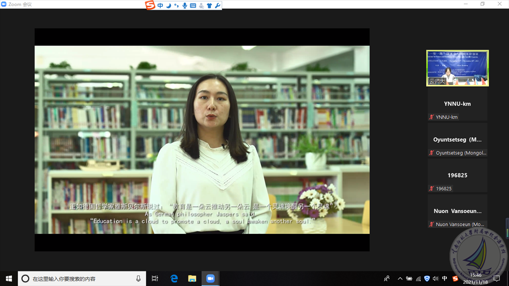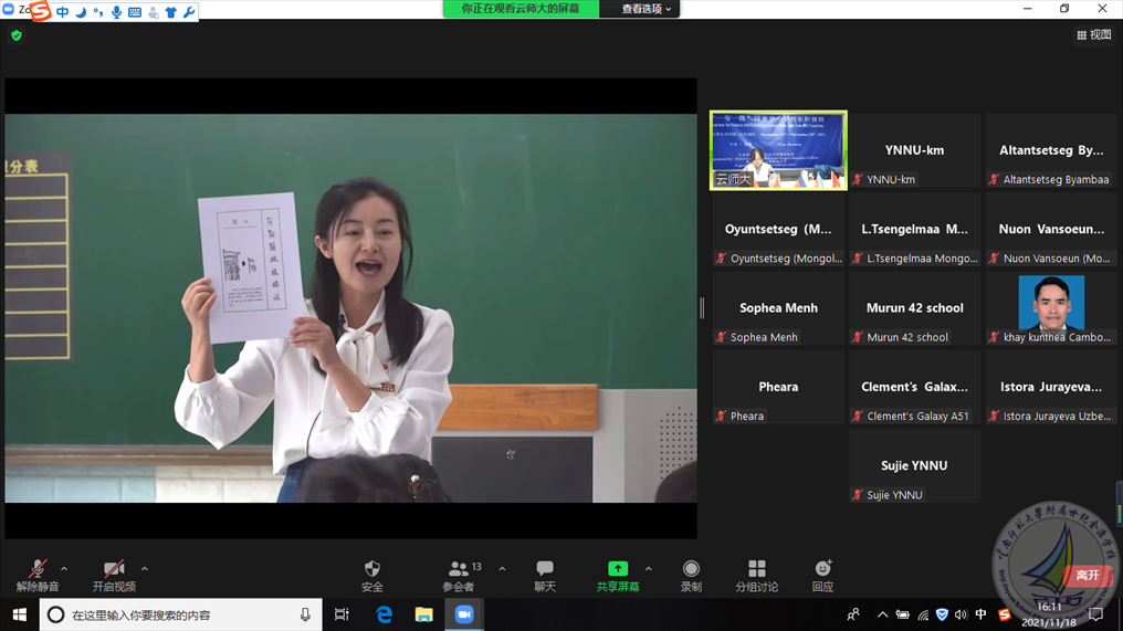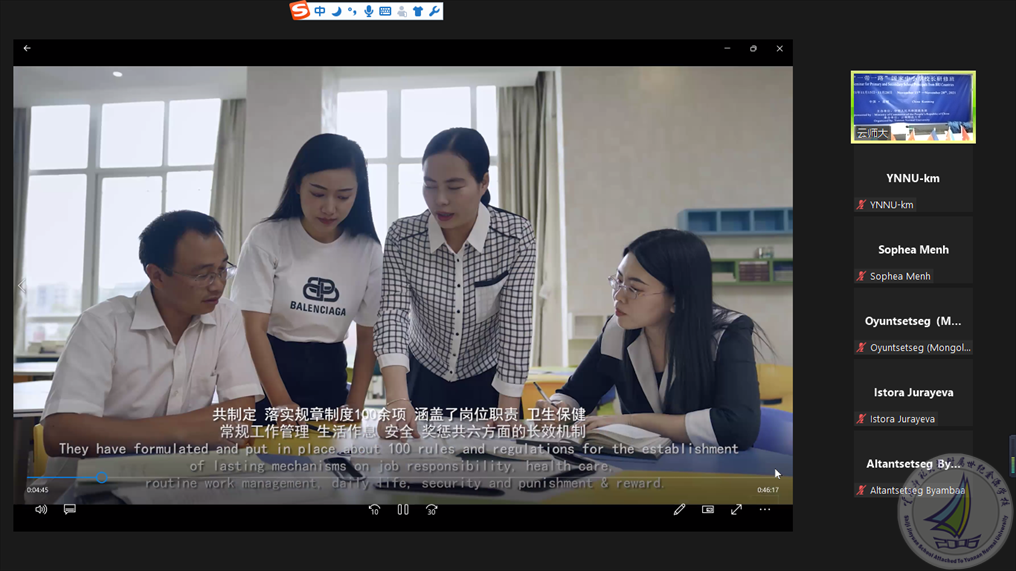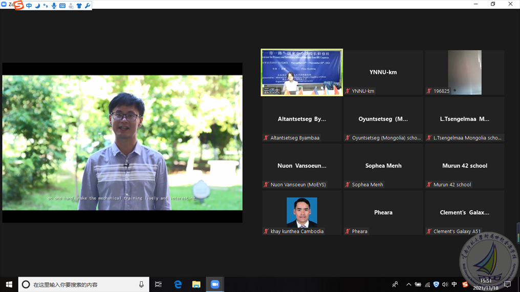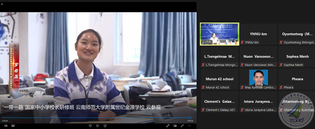 2021年10月到11月期间,由中国商务部主办,云南师范大学举办,具体由国际汉语教育学院实施的对外援助培训项目《“一带一路”国家中小学校长研修班》通过提前到我校进行录制的形式,在线上对我校进行了参观。