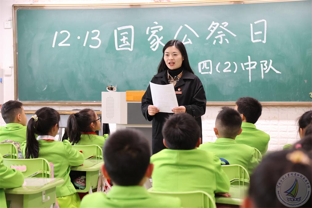 我校学生发展中心在中学段和小学段晨会中举行了国家公祭日活动。