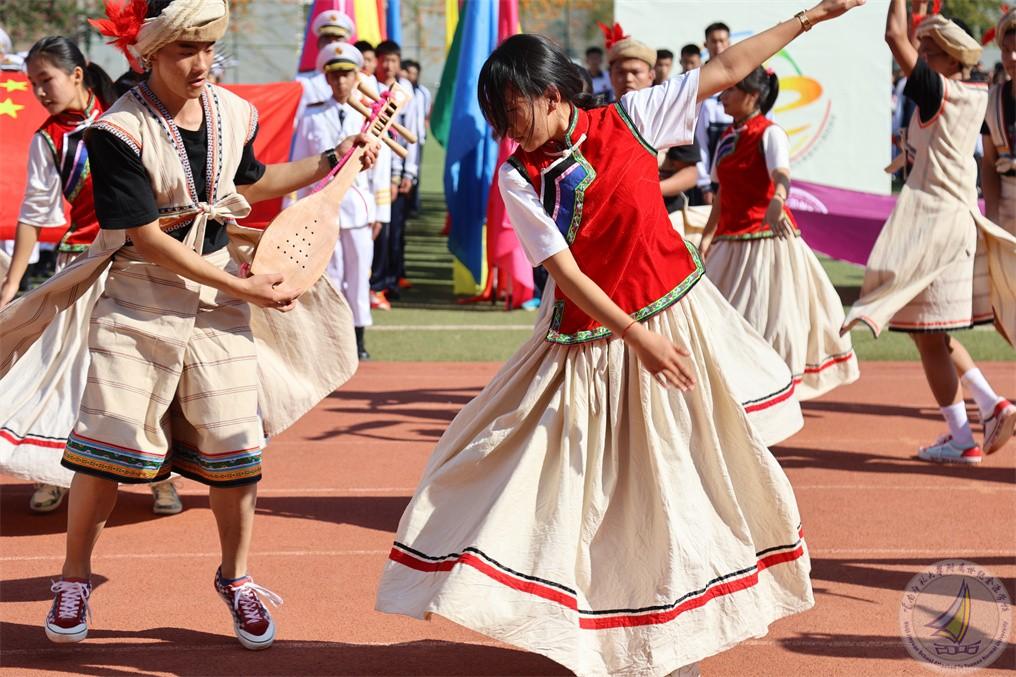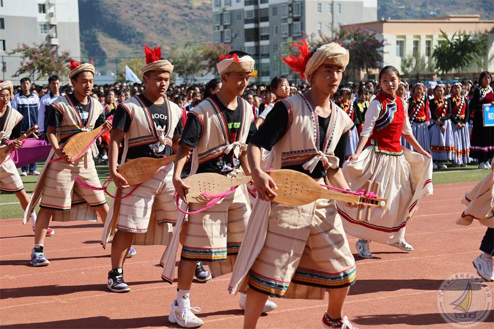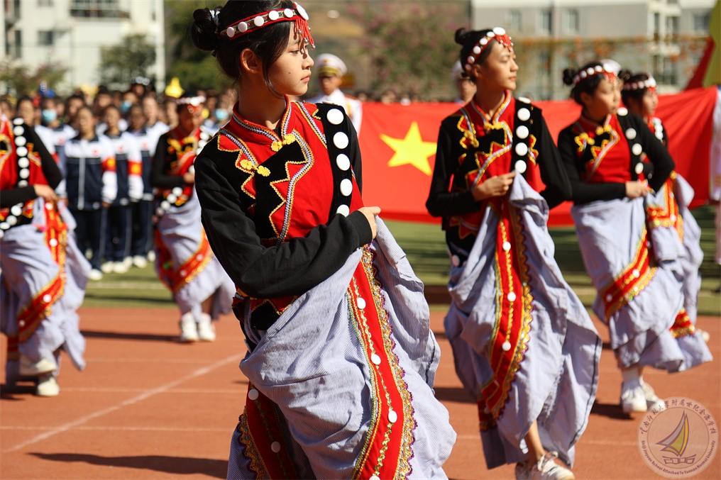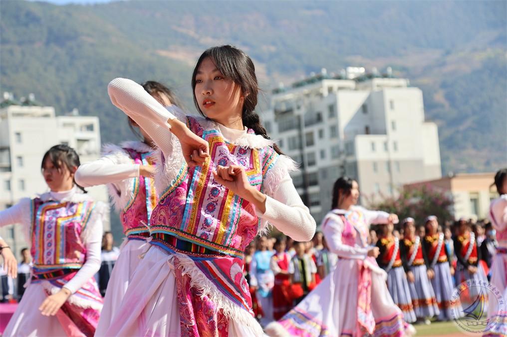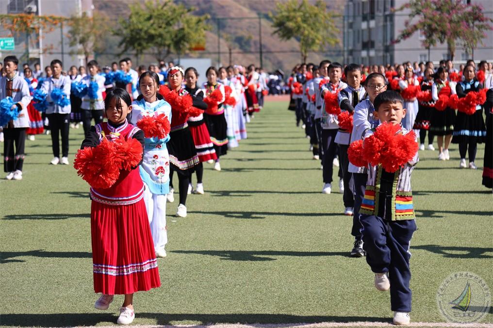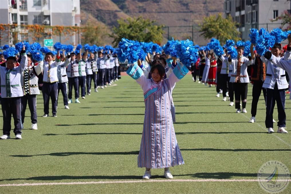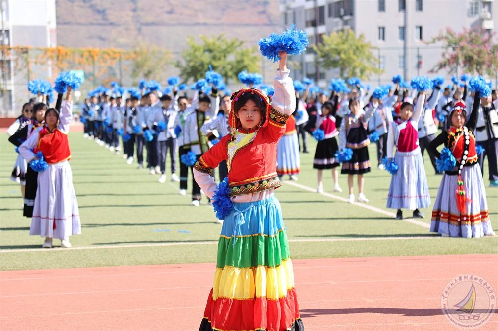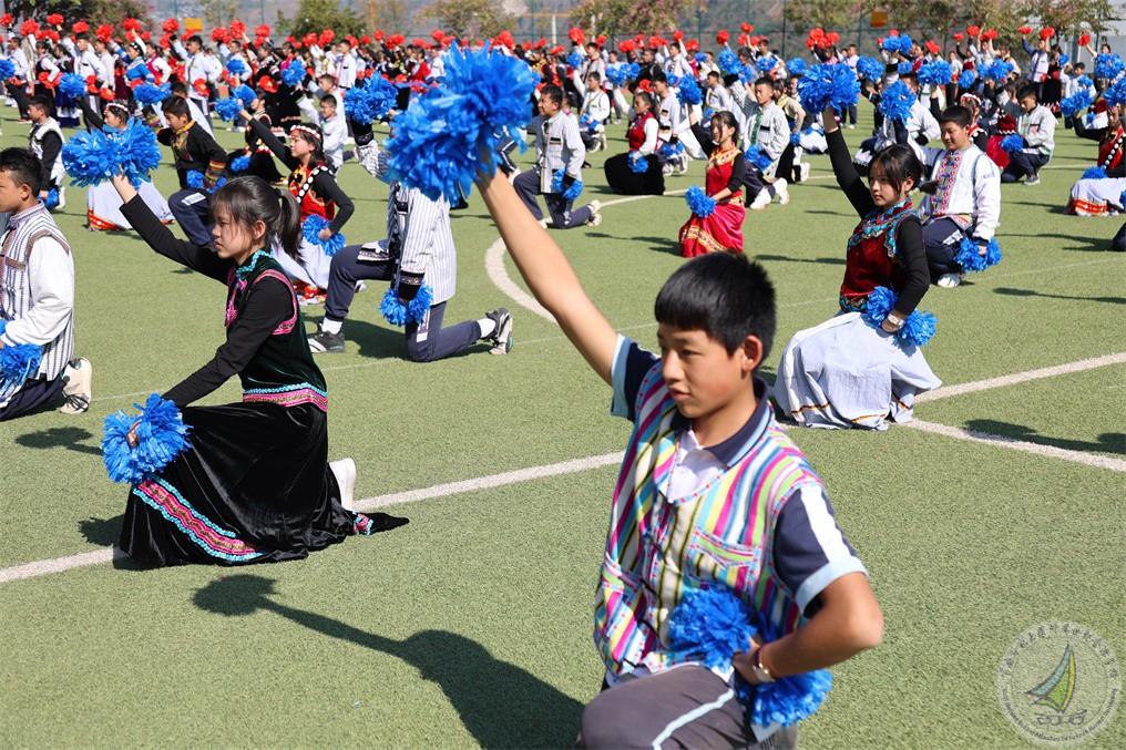 在开幕式上,每个年级用民族舞蹈表达出“更快更强”的体育精神,在欢快的音乐、热情的节奏中,怒江宝宝把怒族、傈僳族、独龙族、普米族日常生活、生产活动赋予艺术的韵味,表演起来活泼多变,热情奔放,一派阳刚之气。既有卖花担上,买得一枝春欲放的美艳,也有菊花须插满头归的开怀!