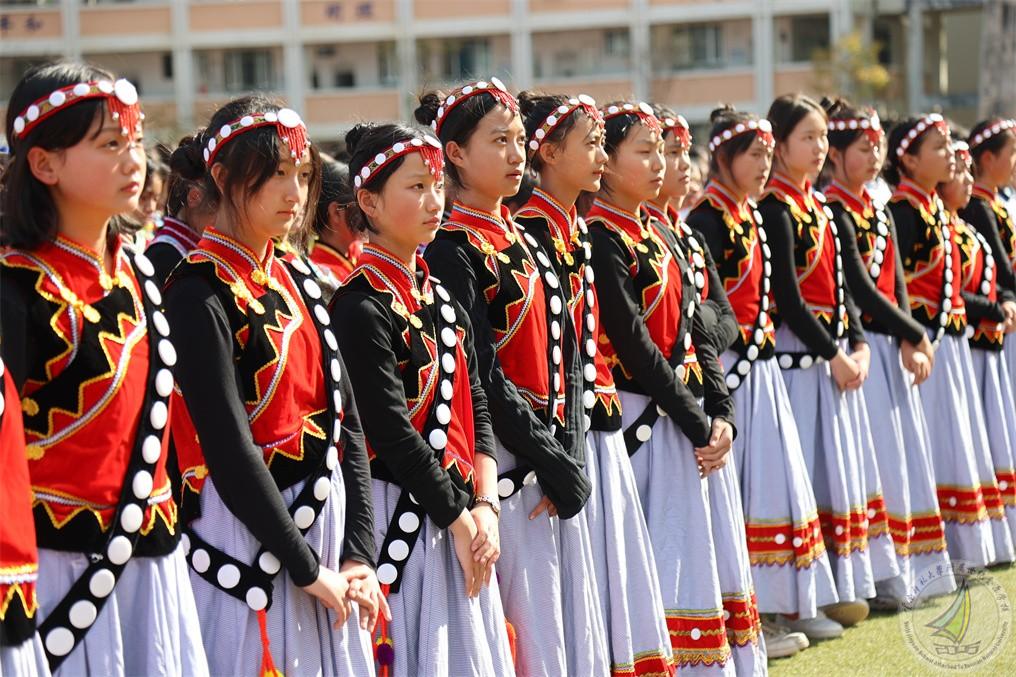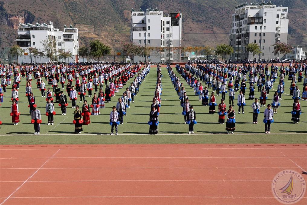 12月29日下午,在怒江州民族中学开展了第六十三届运动会开幕式,时尚阳光、充满青春气息的啦啦操展示璀璨绽放。初中方阵的1000多名怒江宝宝身着多彩民族服装,整齐的队形,矫健的身姿,自信的微笑展示了边疆少年阳光健康、团结向上的精神风貌!啦啦操文化的“感召力、影响力、凝聚力、团队、时尚、活力、自信、欢乐”已经在怒江宝宝的心里生根发芽!戴花持酒祝东风,千万莫匆匆!