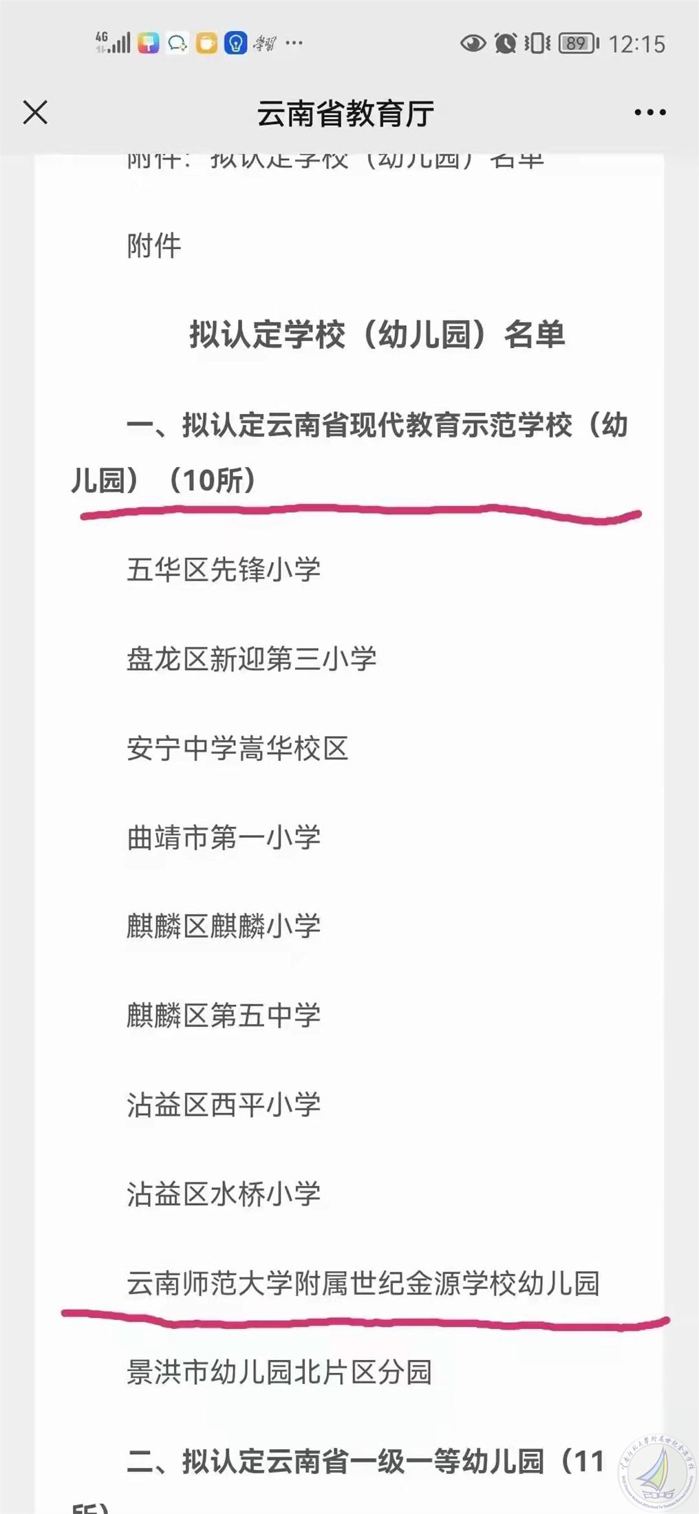 我校幼儿园被评为:云南省现代教育示范学校