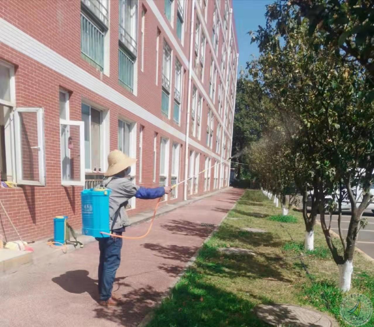 后勤保障中心处对学校供电、供水设备和校园公共环境进行巡视检修。确保公共环境卫生干净整洁,分别对楼道、卫生间进行大扫除,对校园花草树木完成了农药喷洒,对校园各处进行消毒,进行饮水机清洗消毒等工作。对于发现的问题、存在的隐患,后勤保障中心及时安排工作人员进行维修整改,为返校师生提供安全舒适的校园环境。