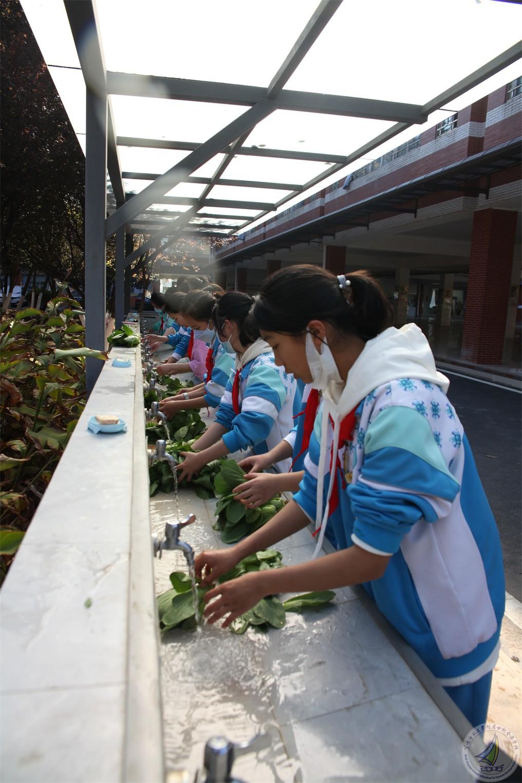 最后,老师和孩子们把收获的小白菜分别打包送给各办公室的老师、保安叔叔,还有帮助孩子们一起管理基地的绿化师傅们,感恩他们在自己成长路上的教育、爱护和帮助。