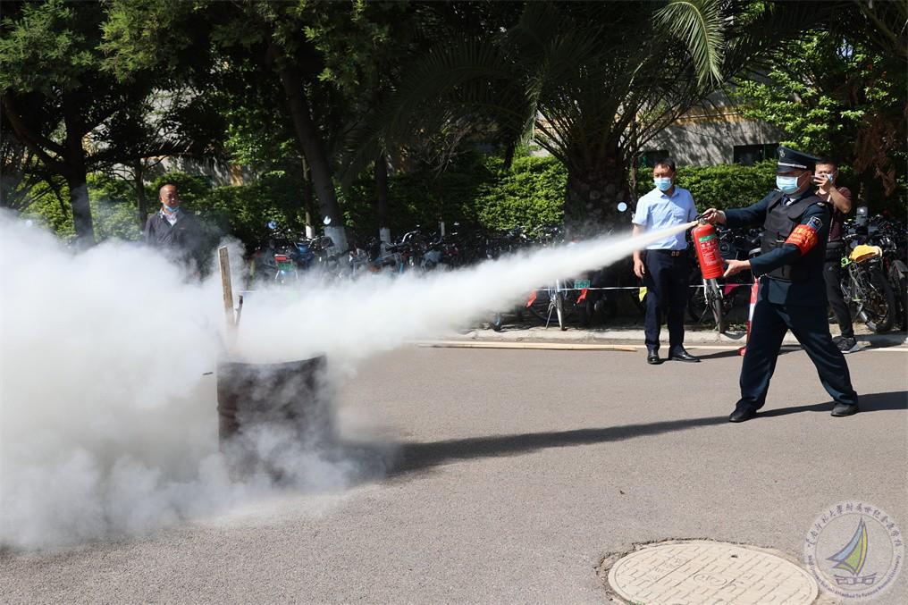 学校微型消防站志愿消防员及学校防火重点部门负责人灭火实际操作。