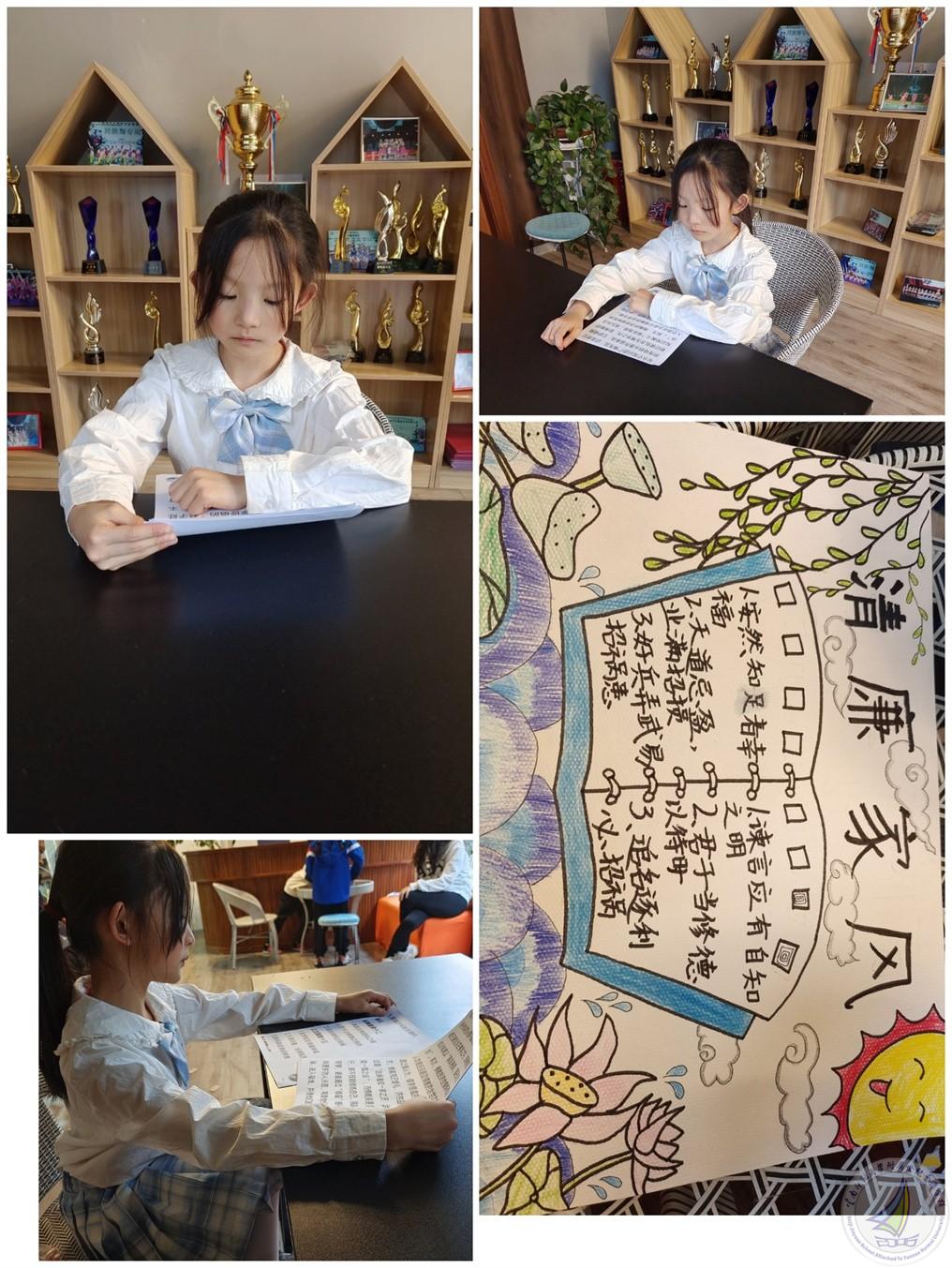 同学们有的自己阅读,用心感受“清廉”的重要;有的和家长一起认真观看,彼此亲切交流对“清廉”的认识;有的和家长一起用毛笔书写“清廉”二字,感受中华优秀传统文化的魅力;还有的把自己的所见所闻所感,化为一份份匠心独运的“清廉”主题手抄报,孩子们工整的文字和精美的图画,令我们非常感动!