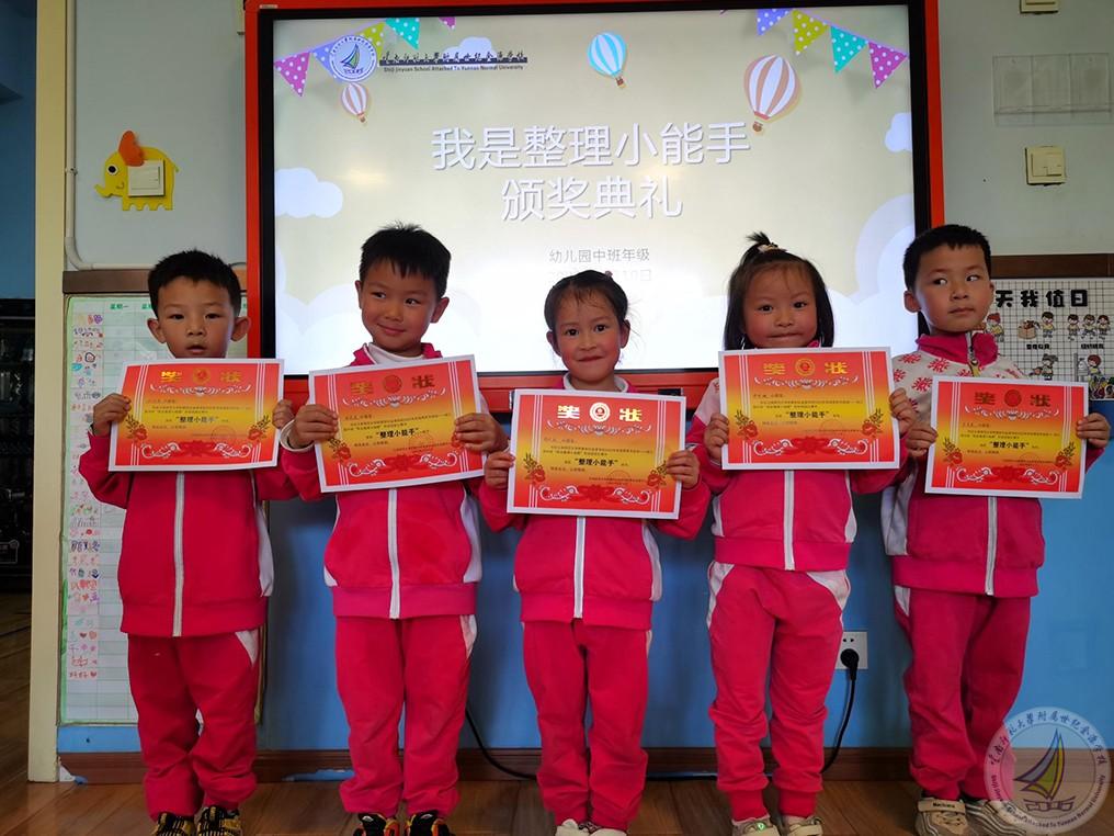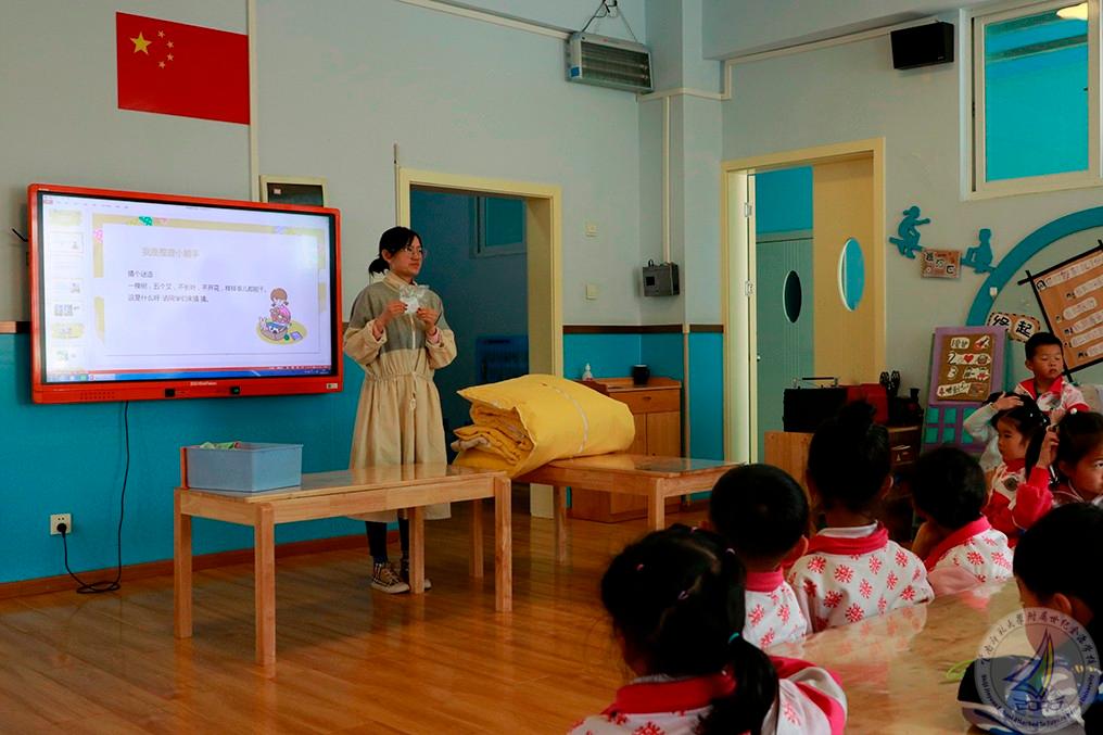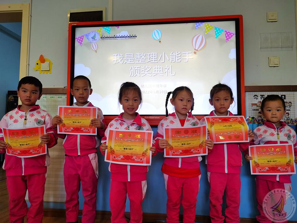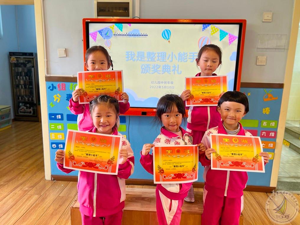 活动分为三个部分:首先,宝贝们在老师的带领下了解了抽屉的结构,并尝试整理了自己的小抽屉,之后孩子们还比赛整理了书包,为步入大班培养了良好的习惯。接下来,孩子们又学习了整理被褥、叠被子的好方法:幼儿一起边念儿歌边完成叠被子,教师们也及时指导,帮助幼儿一起整理。最后,各班针对孩子们的表现评选出“整理小能手”并颁发奖状。